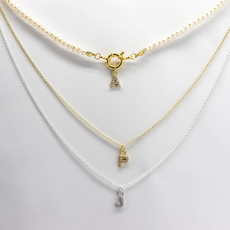 Material: Fio de Prata 925 banhado a ouro de 18K. Letra adornada com zircónias.